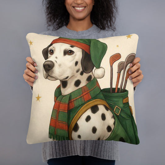 Festive Dalmatian Holiday Pillow – Cozy Winter Dog Illustration